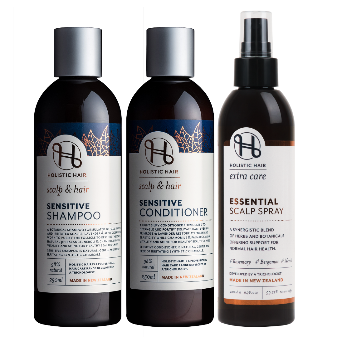 Experience the transformative power of Holistic Hair's Essential Scalp Spray, a multi-award-winning natural hair treatment designed to revitalize your scalp and promote healthy hair growth. This 200ml spray features a synergistic blend of herbs and botanicals, including rosemary and bergamot essential oils to stimulate circulation, and neroli and lavender essential oils to help minimize excess hair fall. Enriched with powerful plant-based antioxidants, this formula helps reduce oxidative stress while soothing and refreshing your scalp for optimal well-being. Elevate your hair care routine with this vegan-friendly, New Zealand-made product for a balanced, healthy scalp and vibrant hair.